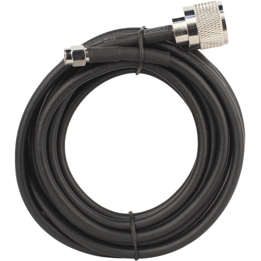 10 feet of 50-ohm black RG58 coax cable. 3/16" diameter with one end terminated with an N-Male connector and the other with an SMA-Male connector. This low loss foam cable can be used both indoors and outdoors with connections between cellular antennas and amplifiers. RG58 is mainly used for consumer applications.